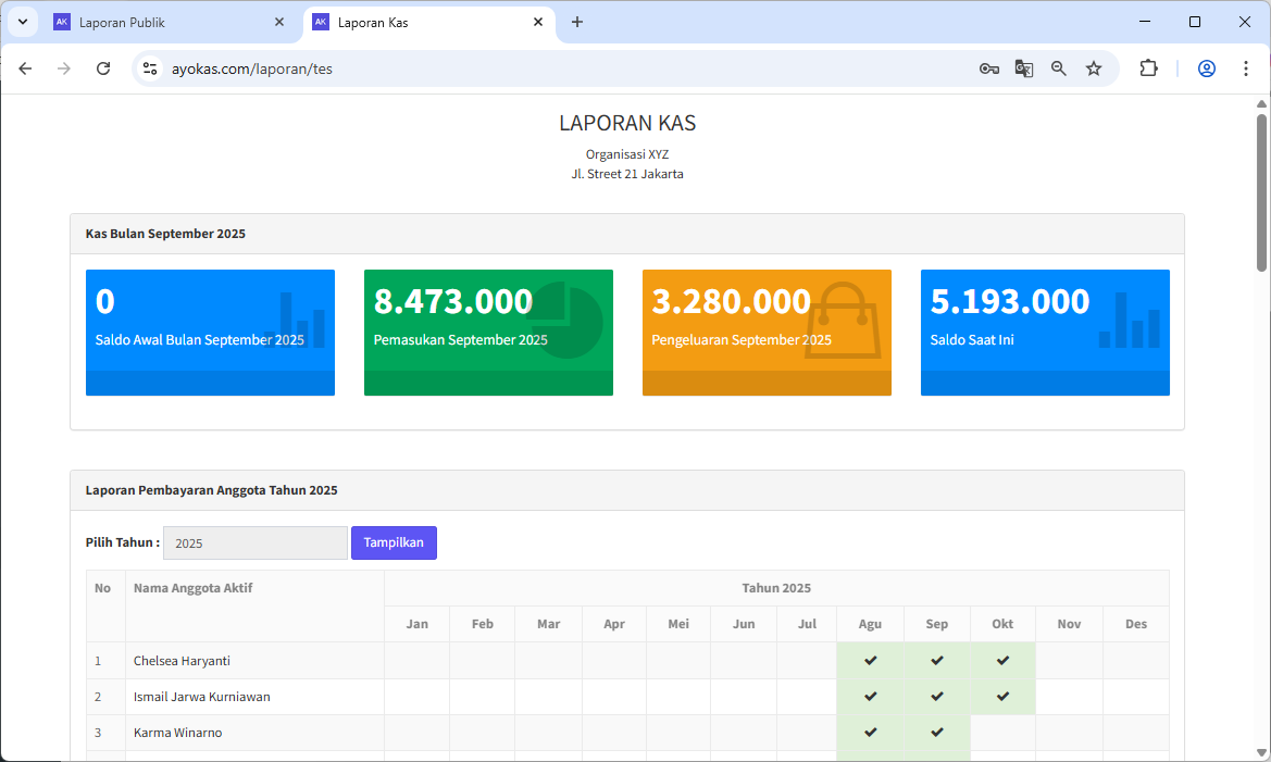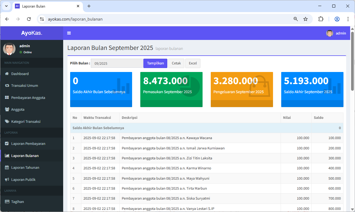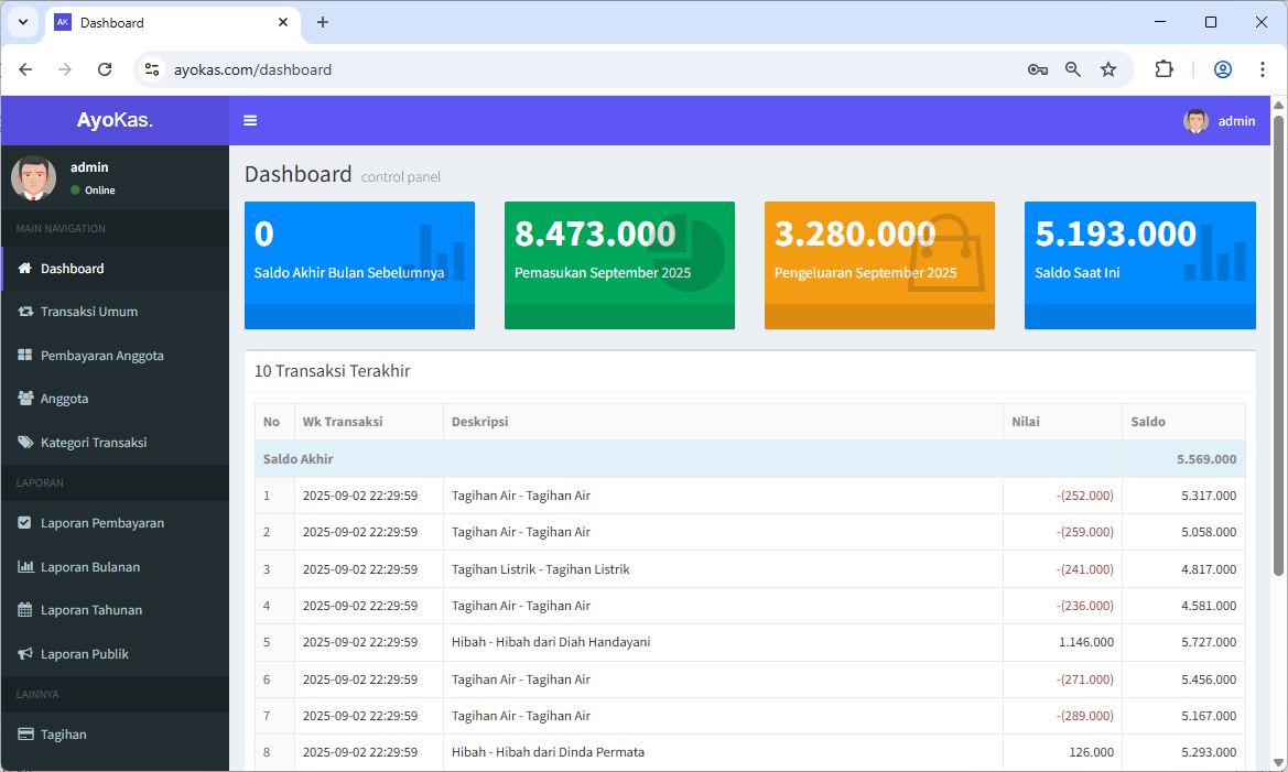 AyoKas adalah aplikasi pencatatan kas khususnya bagi yang memiliki anggota yang melakukan pembayaran bulanan, seperti pencatatan kas kelas, kas RT/RW, kas masjid, kas perkumpulan dan sebagainya. Jangan buang waktu berharga Anda untuk mencatat pemasukan, pengeluaran, pembayaran anggota, notifikasi ke anggota, pembuatan laporan secara manual. AyoKas akan membantu semua hal itu menjadi lebih cepat dan efisien.