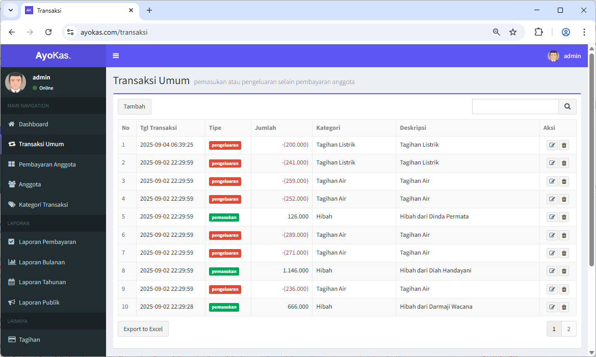 Aplikasi pencatatan kas yang tepat untuk organisasi Anda. Pantau pengeluaran dan pemasukan hanya dengan beberapa klik !