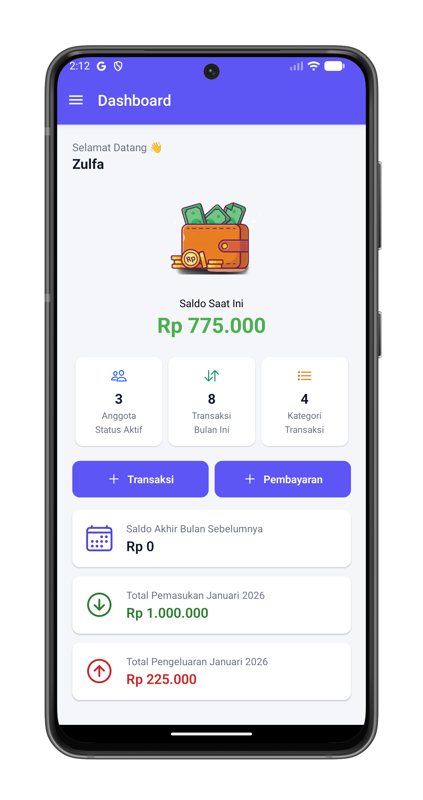 Aplikasi ini adalah solusi pencatatan kas yang praktis dan mudah digunakan. Cocok untuk bendahara RT/RW, bendahara kelas, bendahara angkatan, bendahara perkumpulan, pelaku UMKM, pedagang, freelancer, atau siapa pun yang ingin mencatat pemasukan dan pengeluaran dengan lebih rapi dan efisien.